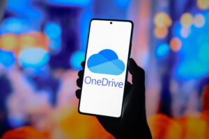 August 21, 2024, Paraguay. In this photo illustration, the Microsoft OneDrive logo is displayed on a smartphone screen.
